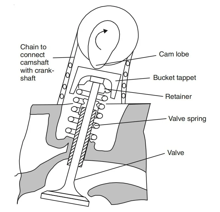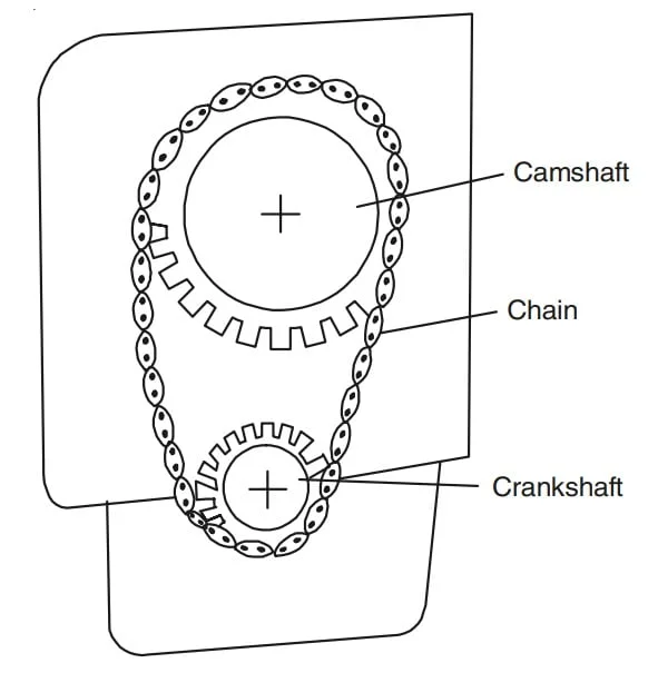 - The camshaft rotates at `left(frac{1}{2}right)` the speed of crankshaft as the valves open only once in complete cycle that require two crankshaft rotations in 4-stroke engine.